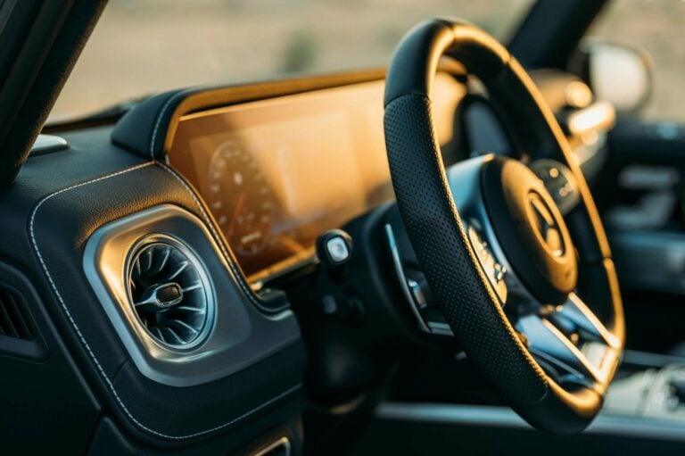 Das Telefon hinter dem Lenkrad, oder besser gesagt über dem Lenkrad, wird ebenfalls von Kameras aufgezeichnet