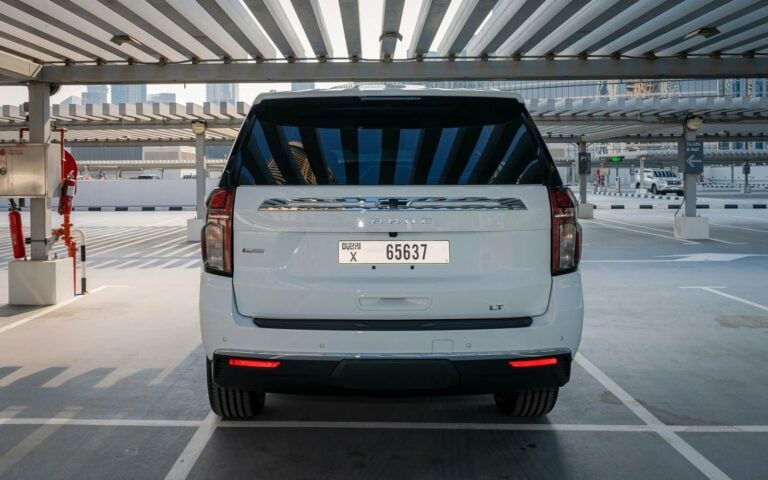 Daglig hyra: den dagliga gränsen är 250 km, det vill säga för två dagar visar det sig vara 500 km etc. Om gränsen överskrids: för varje ytterligare km AED 10/km. För bilar som Chevrolet Tahoe och Cadillac Escalade är den dagliga gränsen 300 km.